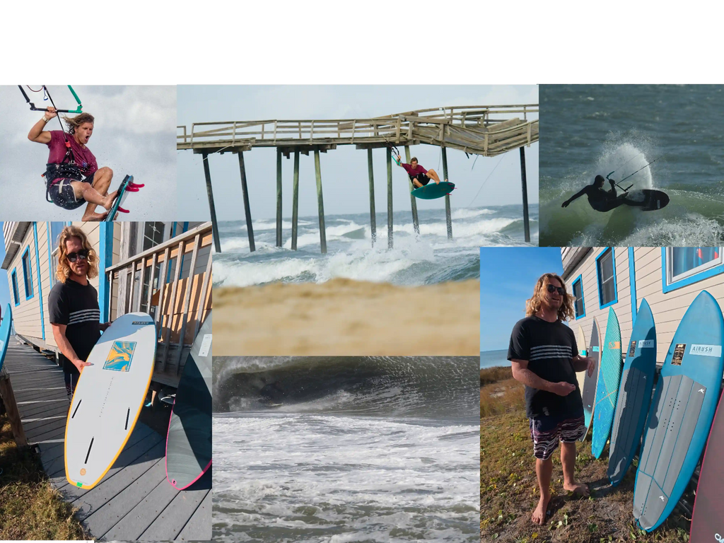 Reider Decker from Hatteras Island Surf Shop (Hisswaves.com) is offering a close‑out sale on Airush kite surfboards—many under $400–$500 with free shipping—featuring a variety of models like the playful Mini Monster, versatile Comp and AMP boards (for waves, flat water, strapless, and freestyle), forgiving Cypher boards, and the rugged carbon OS‑1; plus, if you buy in person at the shop, you get an extra $50 off.